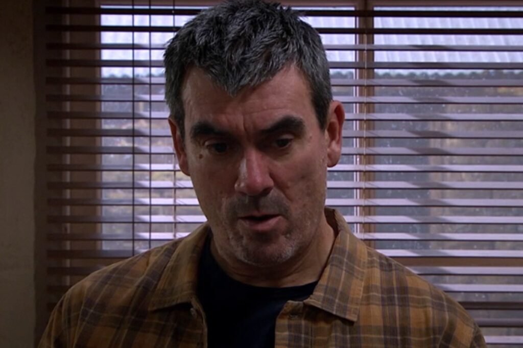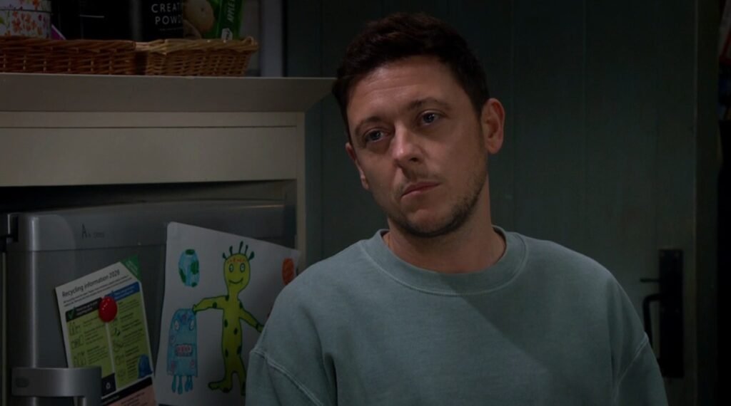 Matty’s stepfather, Cain (Jeff Hordley) — who is still keeping his cancer diagnosis a secret from his family — then entered Butler’s Farm and asked whether Matty had taken the children to Sam’s (James Hooton) house.